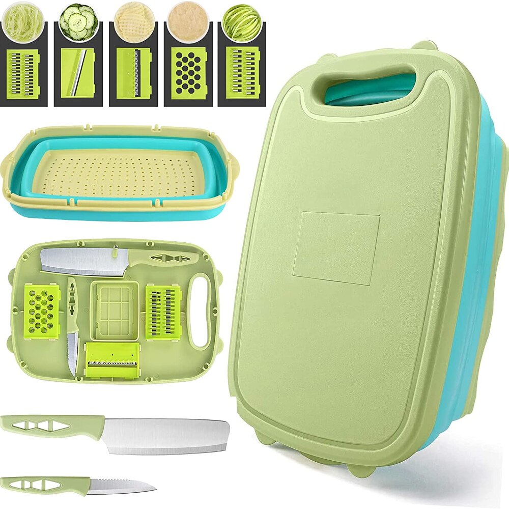 Planche à Découper Multifonction Pliante 9 en 1 Coupe-légumes panier de vidange