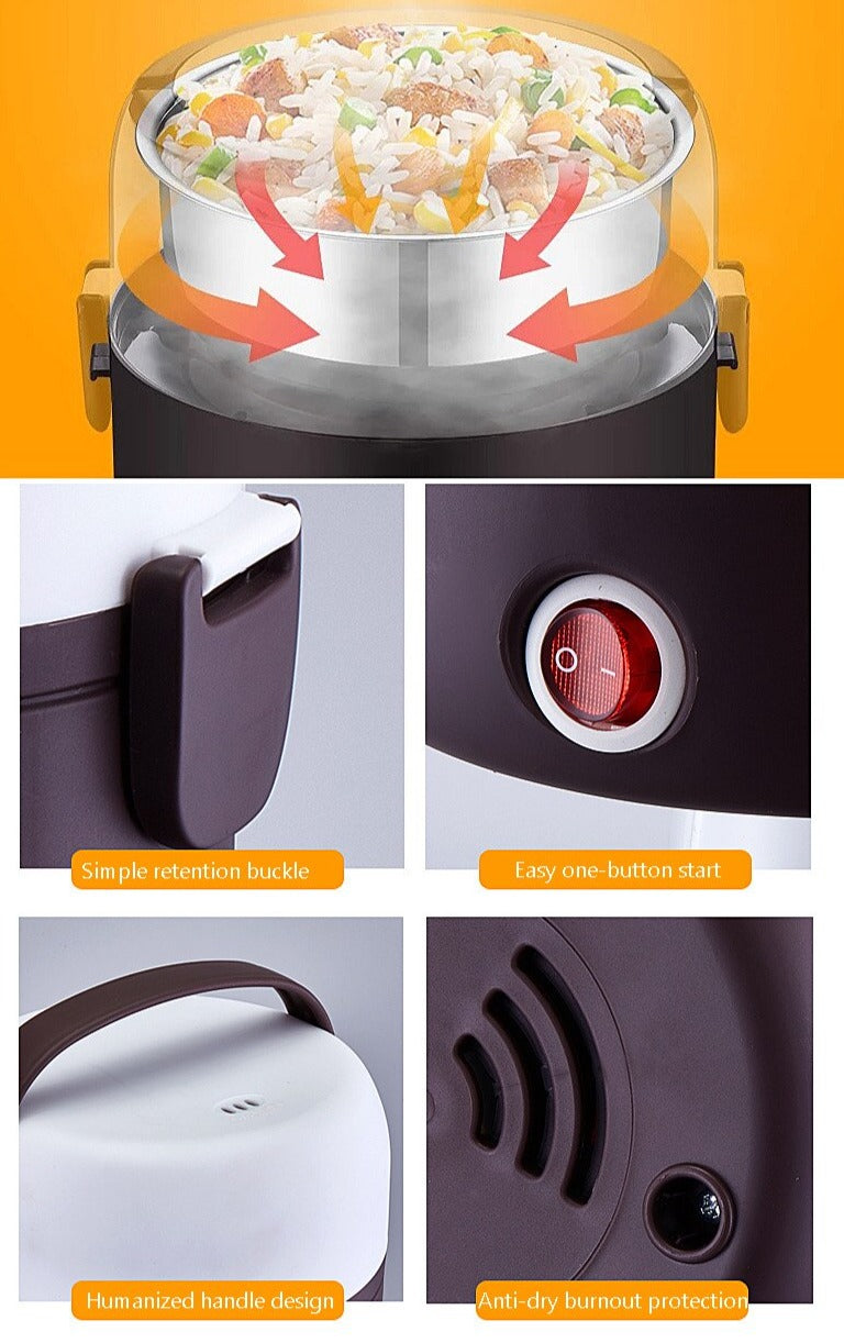 - Boîte à lunch chauffante et cuiseur à vapeur d'œufs - D'une simple pression sur un bouton, la boîte à lunch électrique peut cuire à la vapeur vos œufs, votre riz ou tout type de nourriture selon vos préférences en un peu moins de 15 minutes.