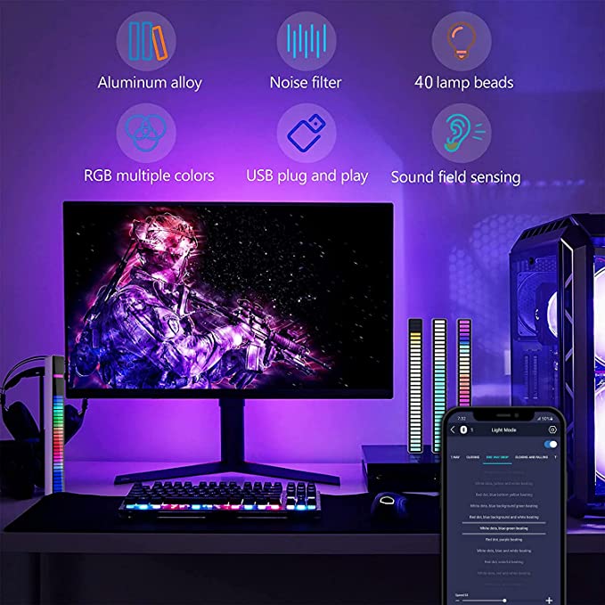 - 【Lumière rythmique RVB 40 bits améliorée】Par rapport à la lumière rythmique traditionnelle 32 bits, cette lumière RVB intègre 40 perles de lampe LED colorées, équipées d'un microphone de musique professionnel et d'un processeur ARM 40 Bits, et la réponse la vitesse ne prend que 0,08 seconde, réalisez l'incarnation dynamique de la musique et du champ sonore, vous donnant une beauté décorative dynamique.