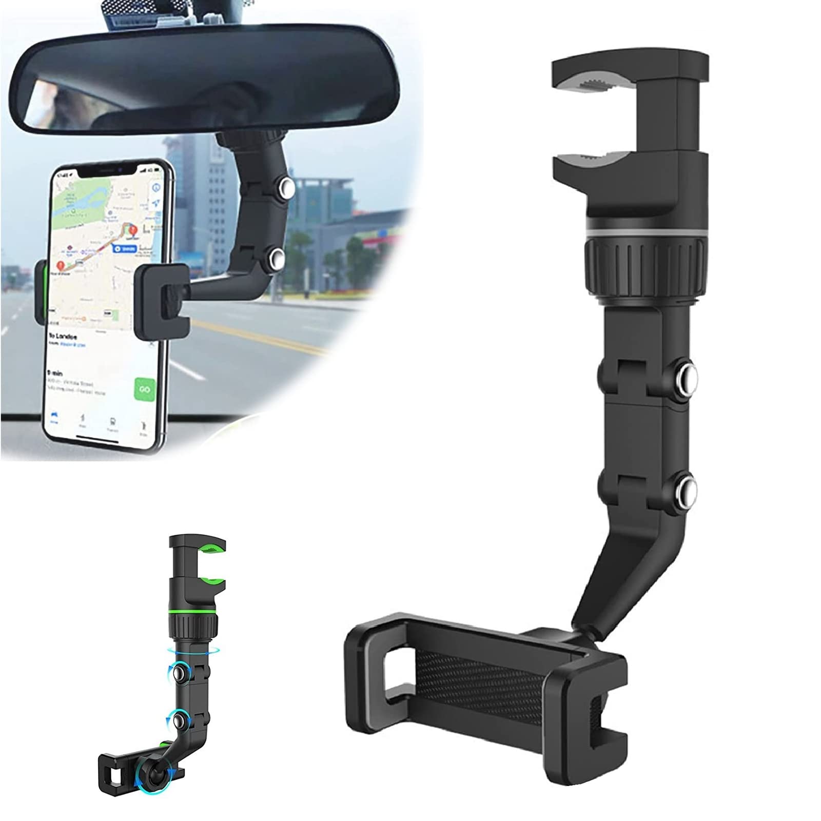 Le clip solide se fixe solidement au rétroviseur et le clip de téléphone accessible d'une seule main facilite l'insertion ou le retrait des téléphones portables sans tomber.
