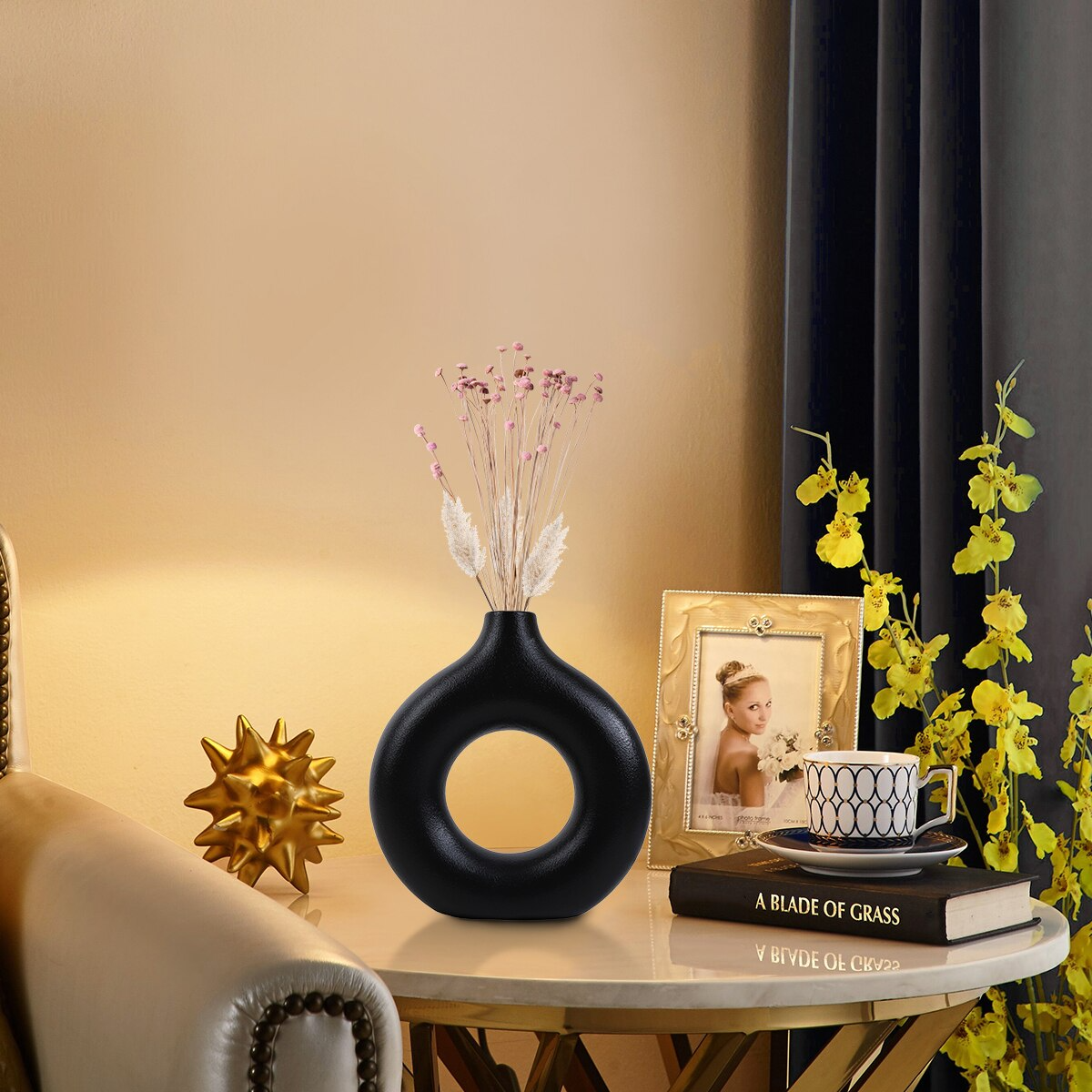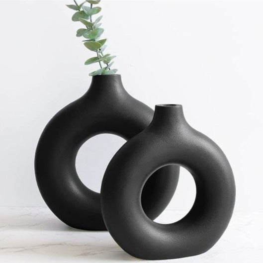 Vase à donuts en céramique, rond, décoratif, creux, à fleurs, de petite et moyenne taille, moderne, noir, décoration de chambre