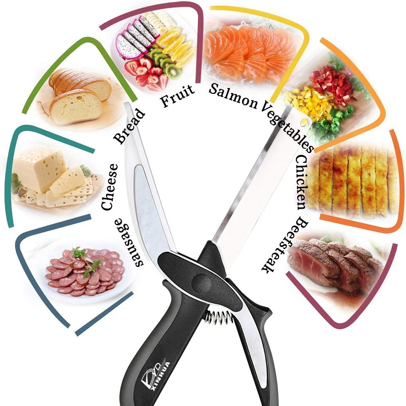 Faites un travail rapide de votre préparation alimentaire avec ces ciseaux à salade de cuisine coupe-légumes. Cette planche à découper 2 en 1 est conçue pour trancher et couper facilement des légumes, des fruits, de la viande et plus encore en quelques secondes. Les lames en acier inoxydable sont tranchantes et durables, vous pouvez donc couper des légumes durs comme des carottes ou des pommes de terre sans transpirer. De plus, l'affûteur de lame bonus aide à garder vos lames bien aiguisées pour les années à venir. Parfait pour les cuisiniers occupés qui veulent mettre le dîner sur la table rapidement et facilement !